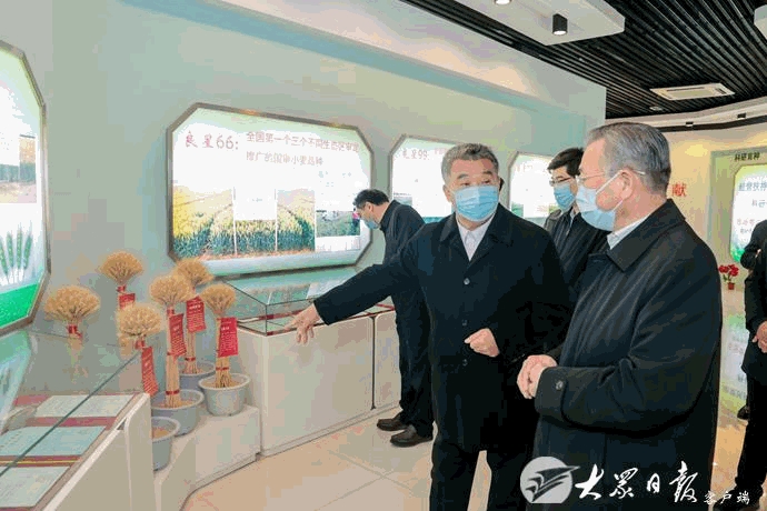 调研中,刘家义来到山东良星种业有限公司,了解企业应对疫情恢复生产所采取的措施,询问良种培育、育种面积、种子销售等情况。在育种试验区,刘家义俯身察看麦苗长势, 了解小麦亩产及抗倒、抗病、抗寒情况,希望企业加大研发力度,努力提高种子质量 ,为打造乡村振兴齐鲁样板贡献力量。